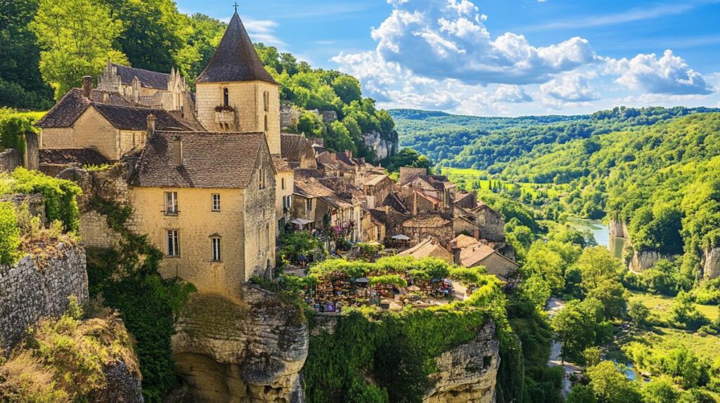 Le Périgord compte plusieurs villages distingués par le label des Plus Beaux Villages de France, reconnaissance d’un patrimoine architectural et d’un art de vivre préservés. Sarlat-la-Canéda figure en tête de liste avec son centre historique exceptionnel où les façades Renaissance côtoient les maisons médiévales dans un dédale de ruelles pavées. La cité médiévale de Domme offre depuis sa barre rocheuse une vue spectaculaire sur la vallée de la Dordogne, justifiant pleinement son surnom d’Acropole du Périgord. Monpazier représente l’exemple parfait de la bastide médiévale avec son plan géométrique caractéristique et sa place centrale bordée de couverts. Ces villages ont su conserver leur authenticité tout en accueillant visiteurs et artisans qui perpétuent les traditions locales. Flâner dans leurs ruelles constitue une expérience sensorielle unique où le temps semble s’être arrêté à l’époque médiévale.